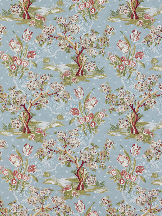 SCALAMANDRE EDWIN'S COVEY LINEN PRINT FABRIC MULTI ON LONDON BLUE - SC 000416310 NEW SKU # SC163100004