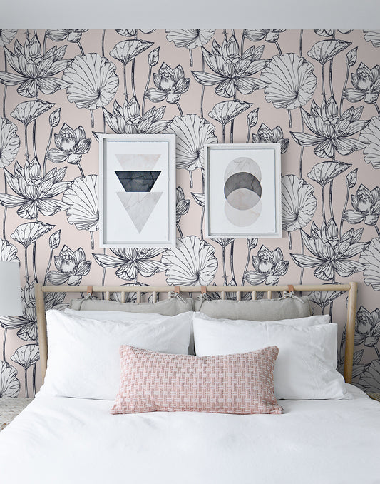 NextWall NextWall Peel & Stick Lotus Floral Floral Contemporary Pink Satin - NW33101