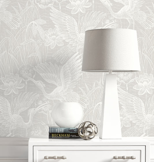 Seabrook Designs White Heron White Heron Floral Animal Print Contemporary Grey Matte - EW11500