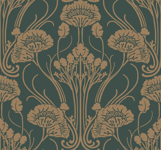 York Wallcoverings Carol Benson-Cobb Signature Nouveae Damask Green Wallpaper Botanical Greens Wallpaper - CA1566