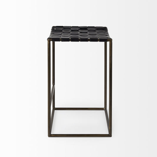 30" Black Leather And Metal Bar Height Bar Chair