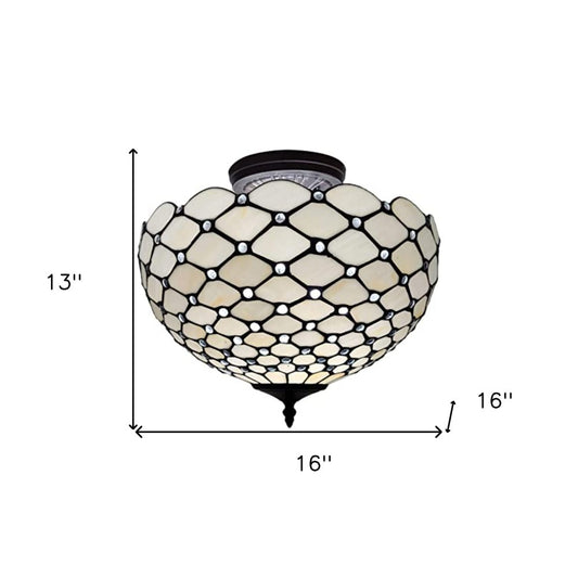 16" Tiffany Style Stained Glass Two Light Glass Dimmable Ceiling Light