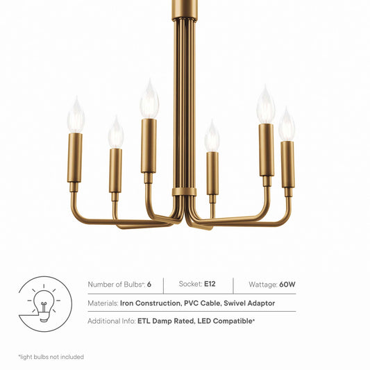 Gold Candle Style Six Light Metal Dimmable Chandelier