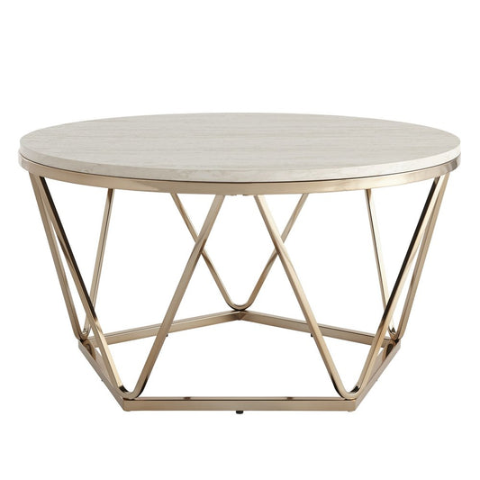 33" Champagne Solid Manufactured Wood And Metal Round Coffee Table