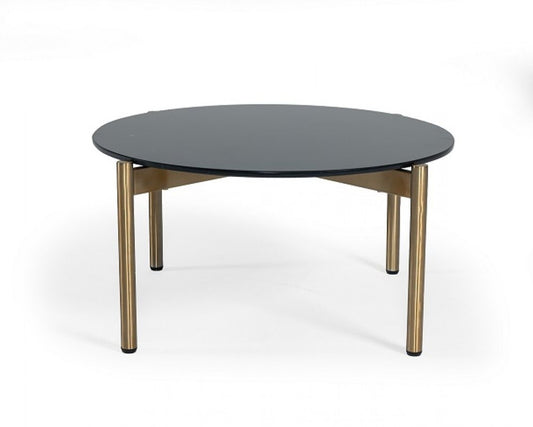 31" Smoky Black and Gold Glass and Metal Round Coffee Table