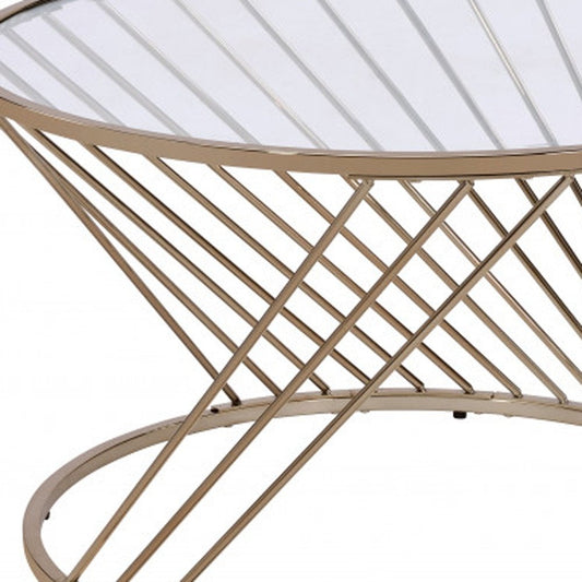 32" Clear And Champagne Glass And Metal With Iron Round Coffee Table