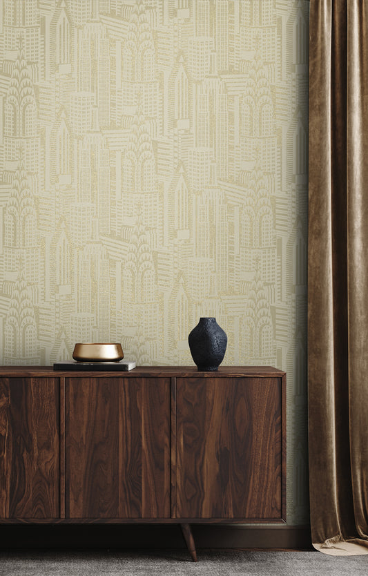 Collins & Company Deco 2 Manhattan Skyline Abstract Contemporary Beige Metallic - DC61503