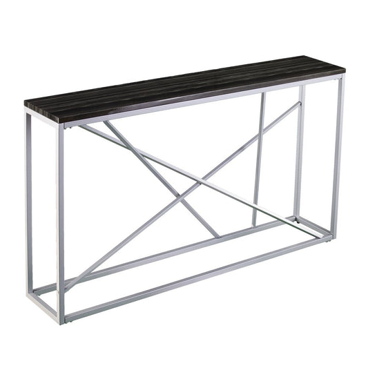 47" Brown and Silver Wood Frame Console Table With Drawer