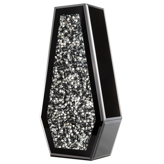 14" Black And Silver Glass Table Vase With Faux Crystals