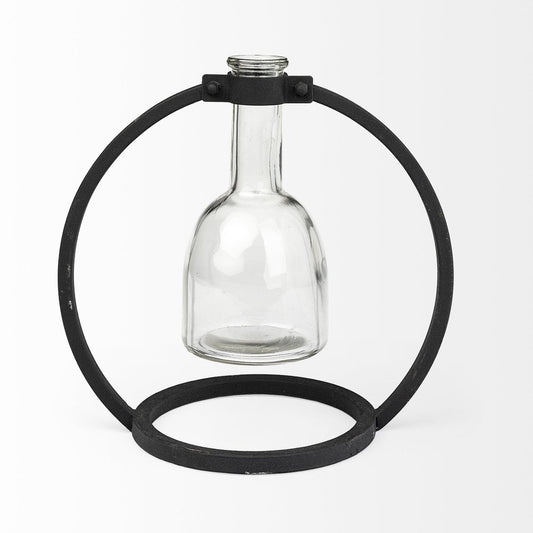 8" Clear and Black Glass and Metal Abstract Cylinder Table Vase