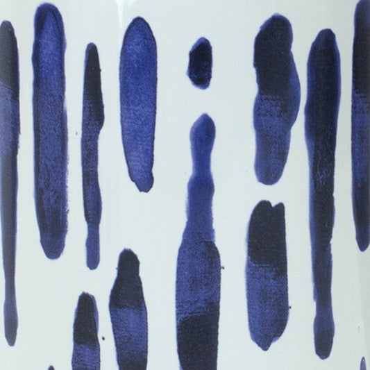 19" Blue and White Geometric Cylinder Terracotta Floor Vase