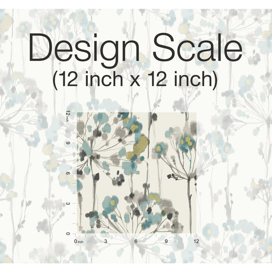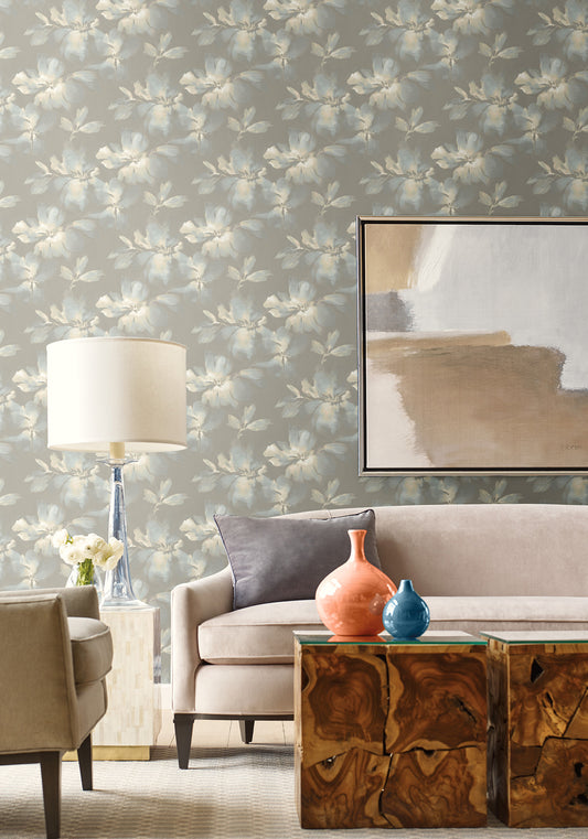 York Wallcoverings Simply Candice Flourish Sheer Blue and Grey Peel and Stick Wallpaper Florals and Flowers Blues Wallpaper - PSW1428RL