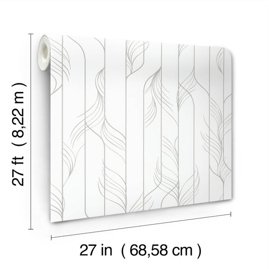 York Wallcoverings Candice Olson Decadence II Elemental Thread White and Silver Wallpaper Modern Stripes Whites and Off-Whites - DF3302