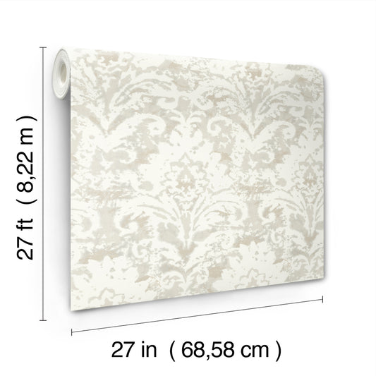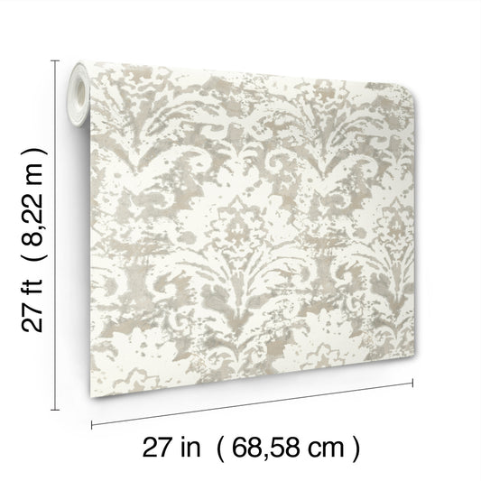 York Wallcoverings Candice Olson Decadence II Velvet Crush Damask Soft Neutral and Pearl Wallpaper Traditional Damasks Beiges - DF3333