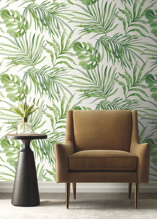York Wallcoverings RoomMates Tropical Cabana Spa Peel and Stick Wallpaper Tropical Botanical Greens Wallpaper - PSW1613RL