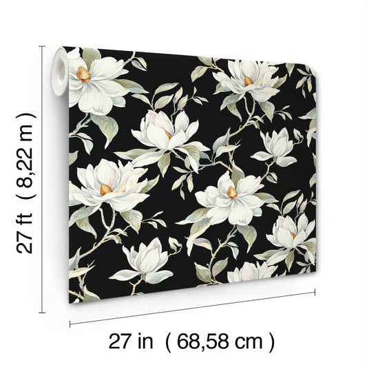 York Wallcoverings Simply Candice Midnight Blooms Neutral Peel and Stick Wallpaper Florals and Flowers Blacks Wallpaper - PSW1414RL