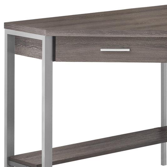 47" Taupe and Silver L Shape Computer Desk With Two Drawers