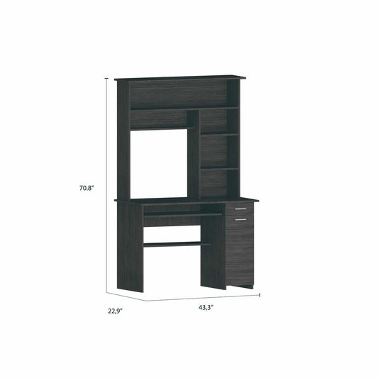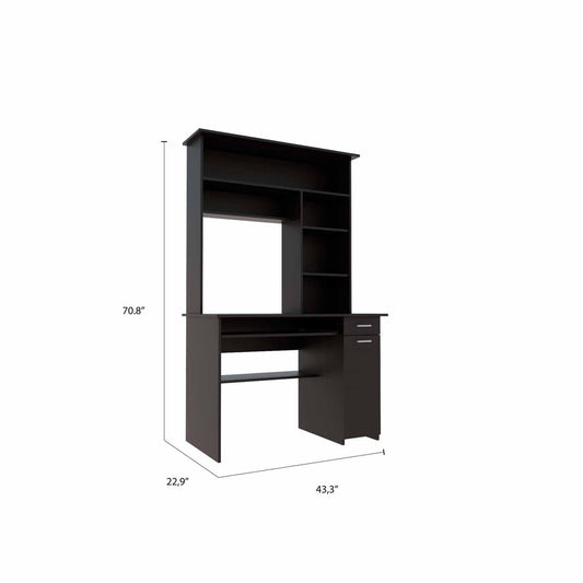 46" Black Solid Wood Writing Desk With Seven Drawers