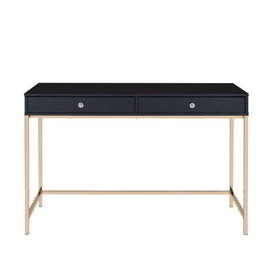 45" White and Bronze Glass Writing Desk With Two Drawers