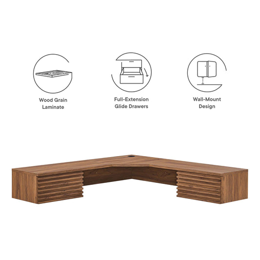 Modway - Render Wall Mount Corner Office Desk by Modway Office Furniture Computer Desks Brown - EEI-6181-WAL