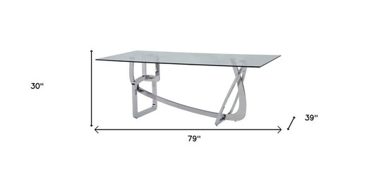 79" Clear And Silver Glass And Stainless Steel Trestle Base Dining Table