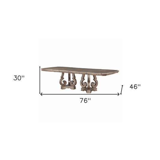 76" Champagne Solid Wood Double Pedestal Base Dining Table