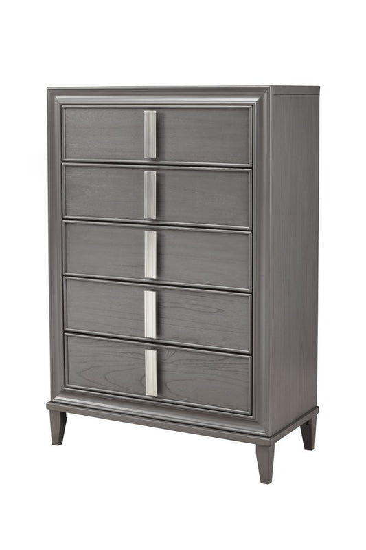 55" Gray and Ivory Solid Wood Five Drawer Gentlemans Chest