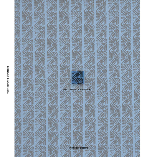 SCHUMACHER DRUSUS TABOR VENETIAN ZIG ZAG BLOCK PRINT PRINTS PRINTS BLACK ON BLUE - 181561