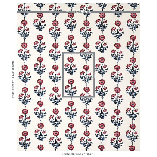 SCHUMACHER FABRIC MOLLY MAHON DIANTHUS HAND BLOCK PRINT INDIGO & IRON - 179741