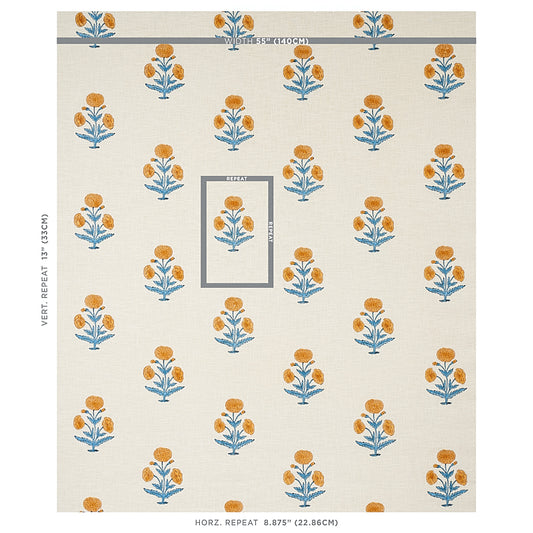 SCHUMACHER FABRIC MOLLY MAHON POPPY HAND BLOCK PRINT MUSTARD & SKY - 179841