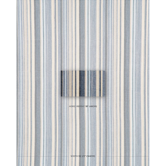 SCHUMACHER FABRIC SEA ISLAND STRIPE ANTIQUE TICKING STRIPE DENIM - 3475004