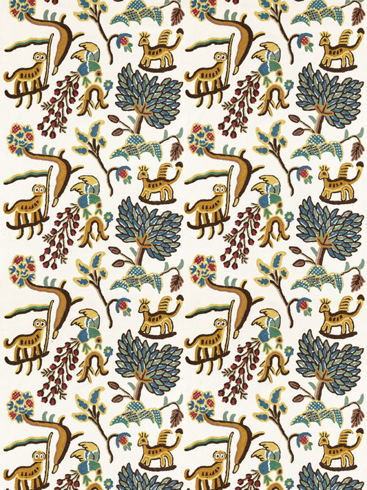 SCALAMANDRE FABLES - JAWAHAR CREWEL FABRIC BLUE / MULTI - BH 00010031 NEW SKU # BH00310001