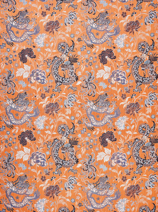 SCALAMANDRE DRAGON TABLEAU FABRIC PERSIMMON BLUE - SC 000427327 NEW SKU # SC273270004