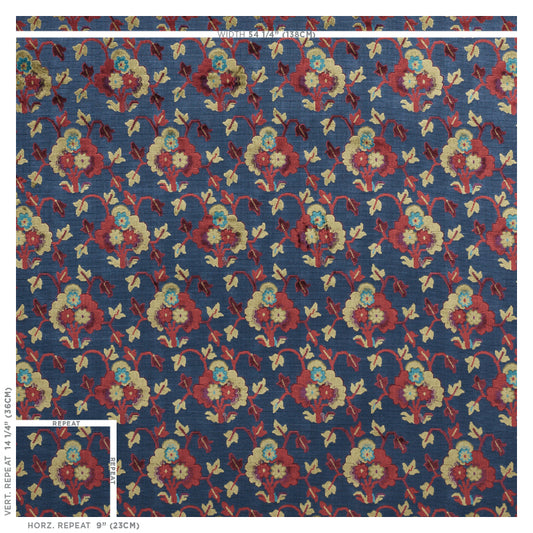 SCHUMACHER CUT & PATTERNED VELVETS JENNIE VELVET VELVETS VELVETS BLUE , RED - 77741