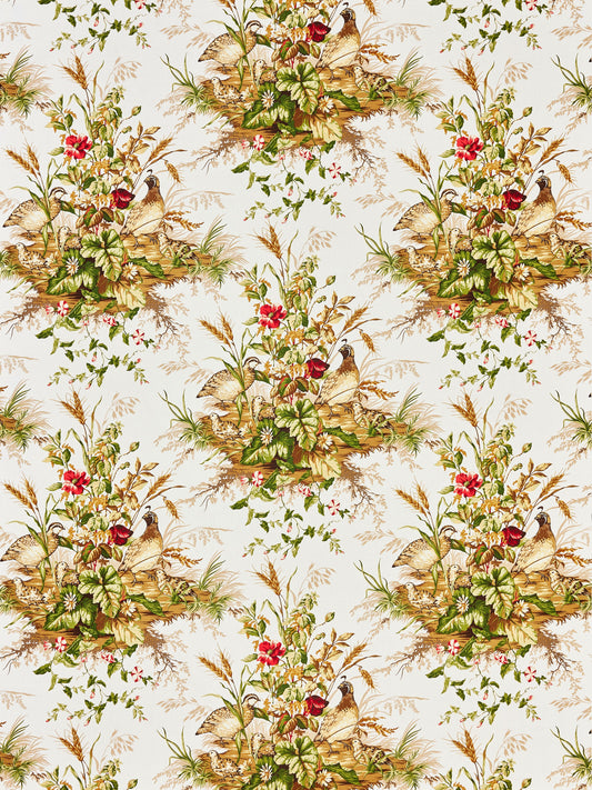 SCALAMANDRE EDWIN'S COVEY LINEN PRINT FABRIC MULTI ON WHITE - SC 000116310 NEW SKU # SC163100001