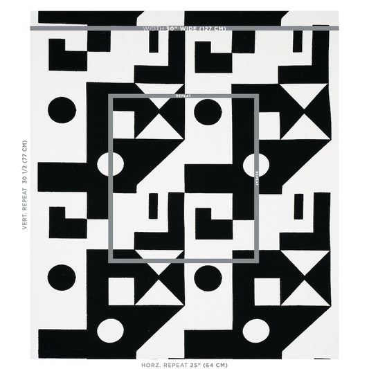 SCHUMACHER NEW WAVE: BLACK & WHITE THRESHOLD PRINTED LINEN PRINTS PRINTS CARBON - 180421