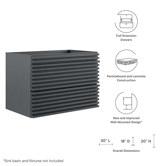 Modway Outlet Render 30" Wall-Mount Bathroom Vanity Cabinet (Sink Basin Not Included) by Modway Bathroom Furniture Gray - EEI-4850-GRY