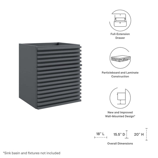 Modway Outlet Render 18" Wall-Mount Bathroom Vanity Cabinet (Sink Basin Not Included) by Modway Bathroom Furniture Gray - EEI-4848-GRY