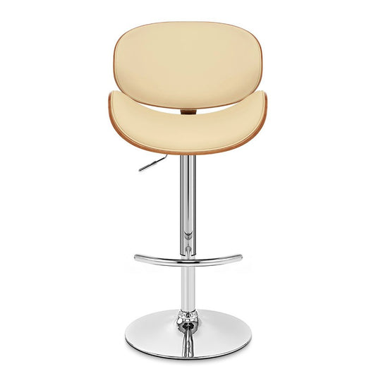 Cream and Silver Faux Leather and Solid Wood Low Back Adjustable Height Swivel Bar Chair