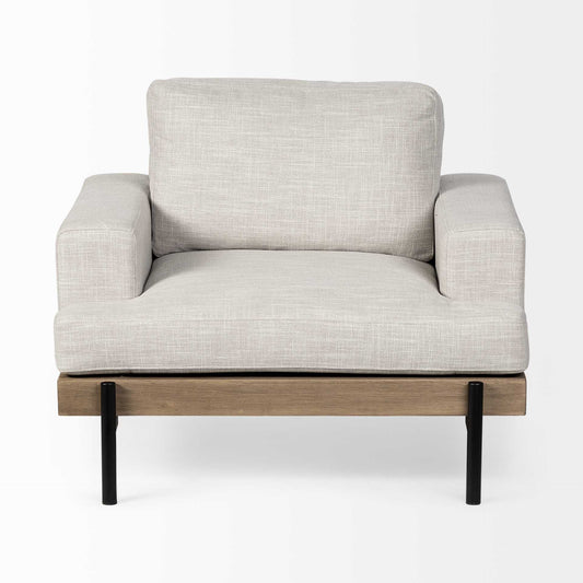 54" Cream and Brown Fabric Tufted Lounge Chair