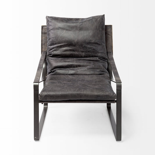 32" Brown and Black Faux Leather Distressed Arm Chair
