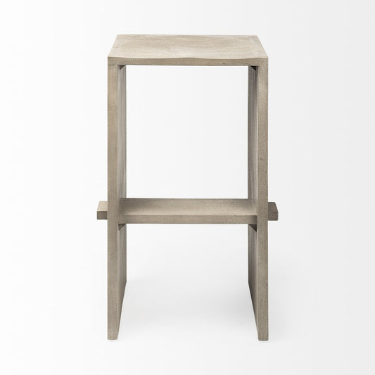 26" Gray and Brown Fabric and Solid Wood Backless Counter Height Bar Chair