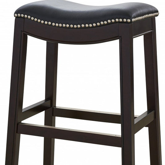 31" Black and Espresso Solid Wood Backless Bar Height Bar Chair