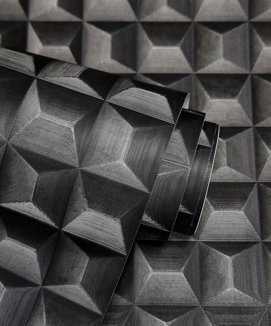 York Wallcoverings Fine Decor Romero Black 3D Geometric Wallpaper Graphics Masculine Black Wallpaper - M95682