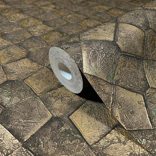 York Wallcoverings Fine Decor Romero Gold 3D Geometric Wallpaper Graphics Masculine Gold Wallpaper - M95685