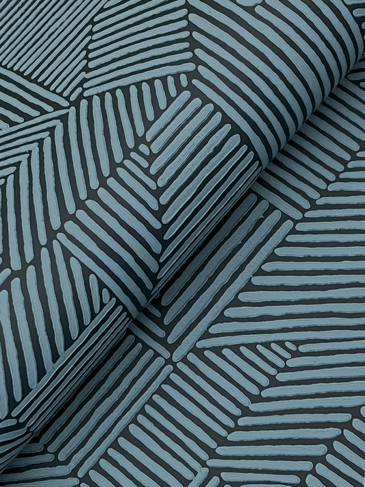 York Wallcoverings A-Street Prints Cipher Blue Geometric Faux Grasscloth Wallpaper Abstract Modern Blue Wallpaper - 4177-27701