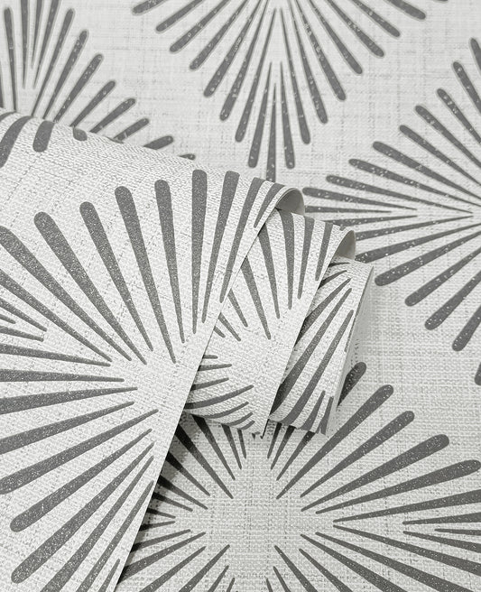 York Wallcoverings Fine Decor Denver Dark Grey Starburst Wallpaper Graphics Retro Dark Grey Wallpaper - FD43747