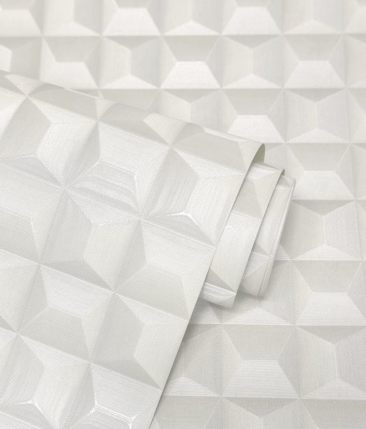 York Wallcoverings Fine Decor Romero White 3D Geometric Wallpaper Graphics Masculine White Wallpaper - M95683