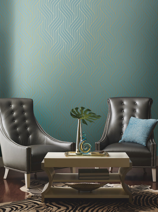 York Wallcoverings Antonina Vella Ebb and Flow Blue and Gold Wallpaper Stripes Blues - NW3520