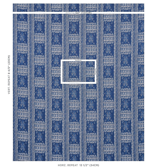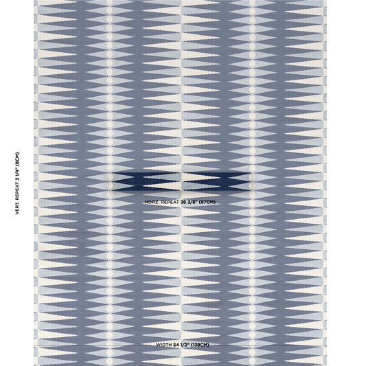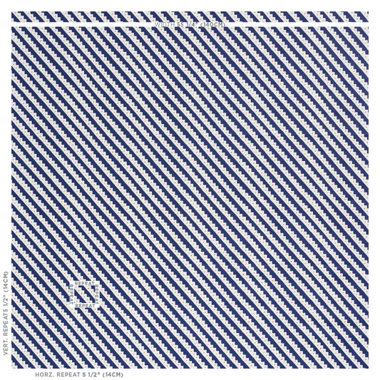 SCHUMACHER DRUSUS TABOR VENETIAN ZIG ZAG BLOCK PRINT PRINTS PRINTS BLACK ON BLUE - 181561
